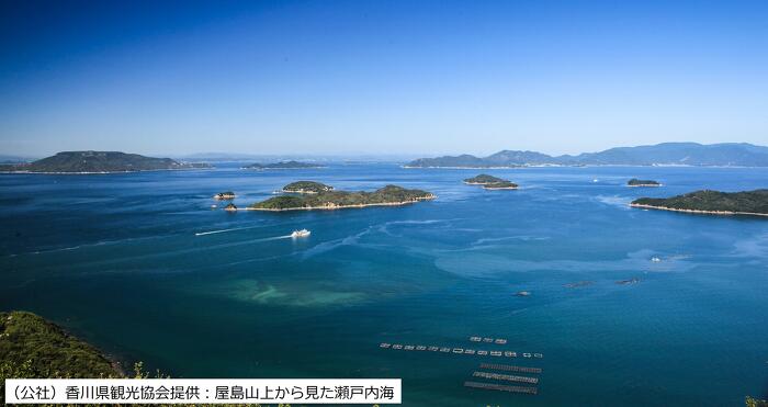瀬戸内海には数多くの島が点在し、島々と穏やかな海とが相まった景観は多島美と形容され、「世界の宝石」とも称されます。