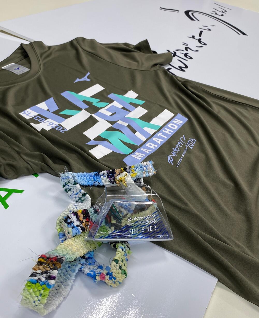 本日、かがわマラソン実行委員会第5回総会を開催し、かがわマラソン2026の参加賞、完走賞、入賞の各賞品を一斉に発表しました。