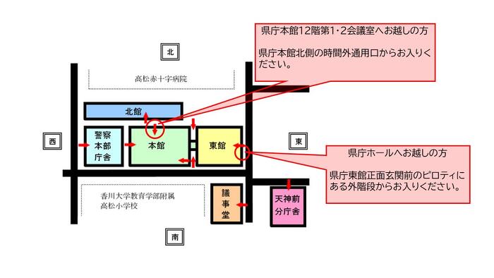 お車でお越しの際は、県庁地下駐車場はご利用いただけませんので、周辺の有料駐車場をご利用くださいますようお願いいたします。