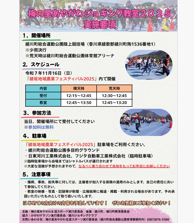 第一弾は、「梅の里あやがわジョギング教室2025」