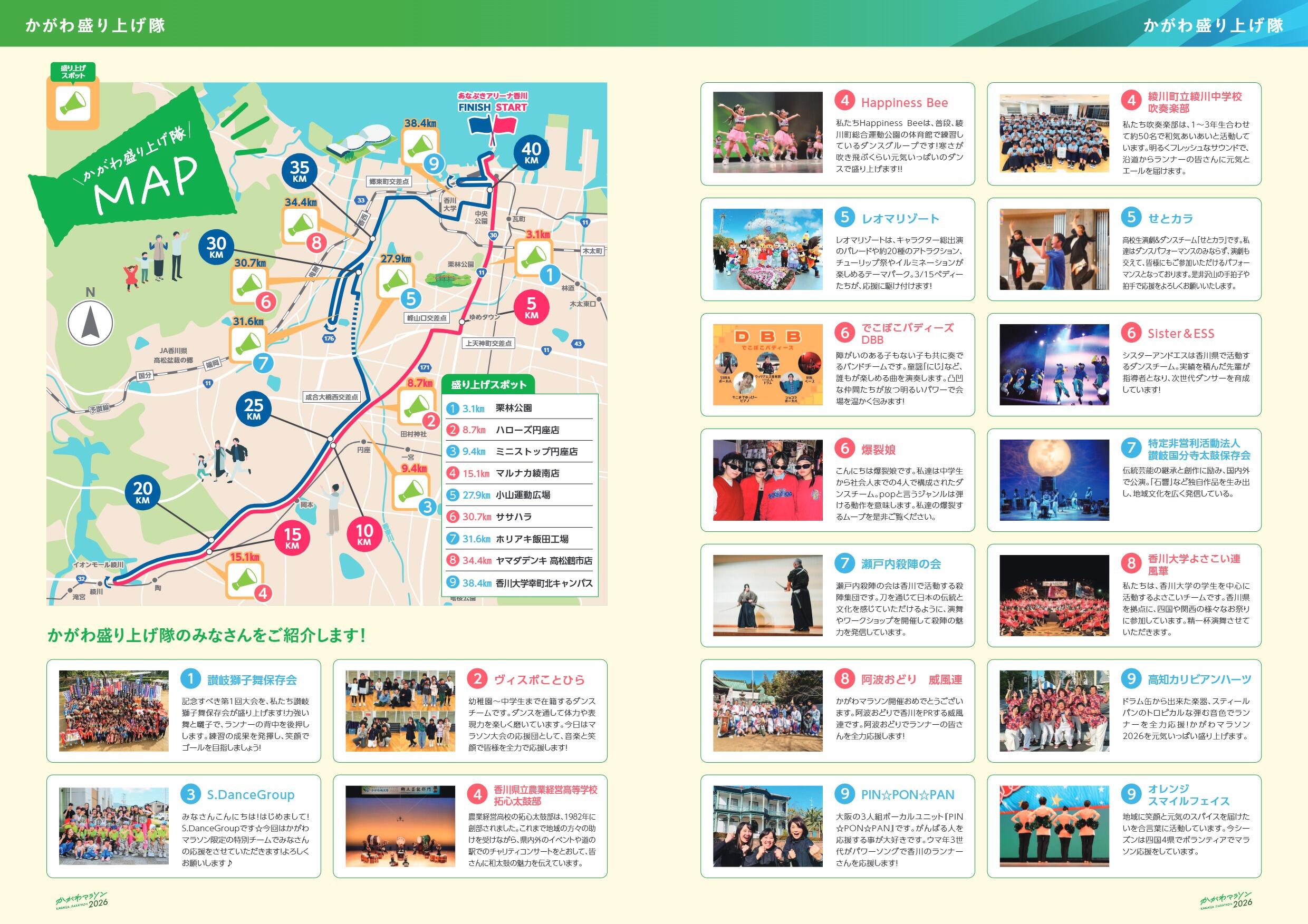 ランナーだけでなく、ボランティアや沿道の皆様が大会をともに楽しめるように県内外各地から応募いただいた出演団体の皆様のパフォーマンスで大会を盛り上げていただきます!